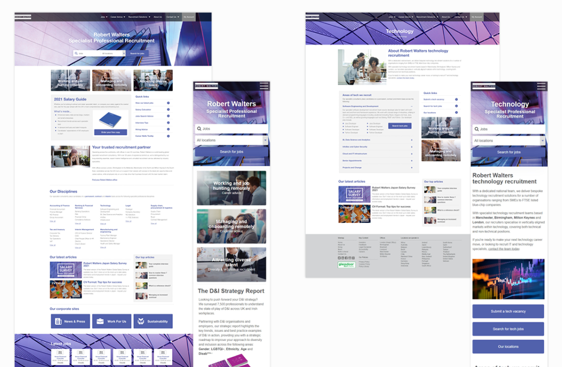 Full-scale redesign of the Robert Walters global website, transitioning from a legacy platform to a modern, user-centric Adobe Experience Manager (AEM) implementation.